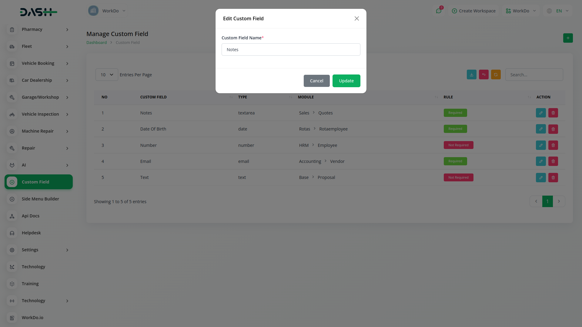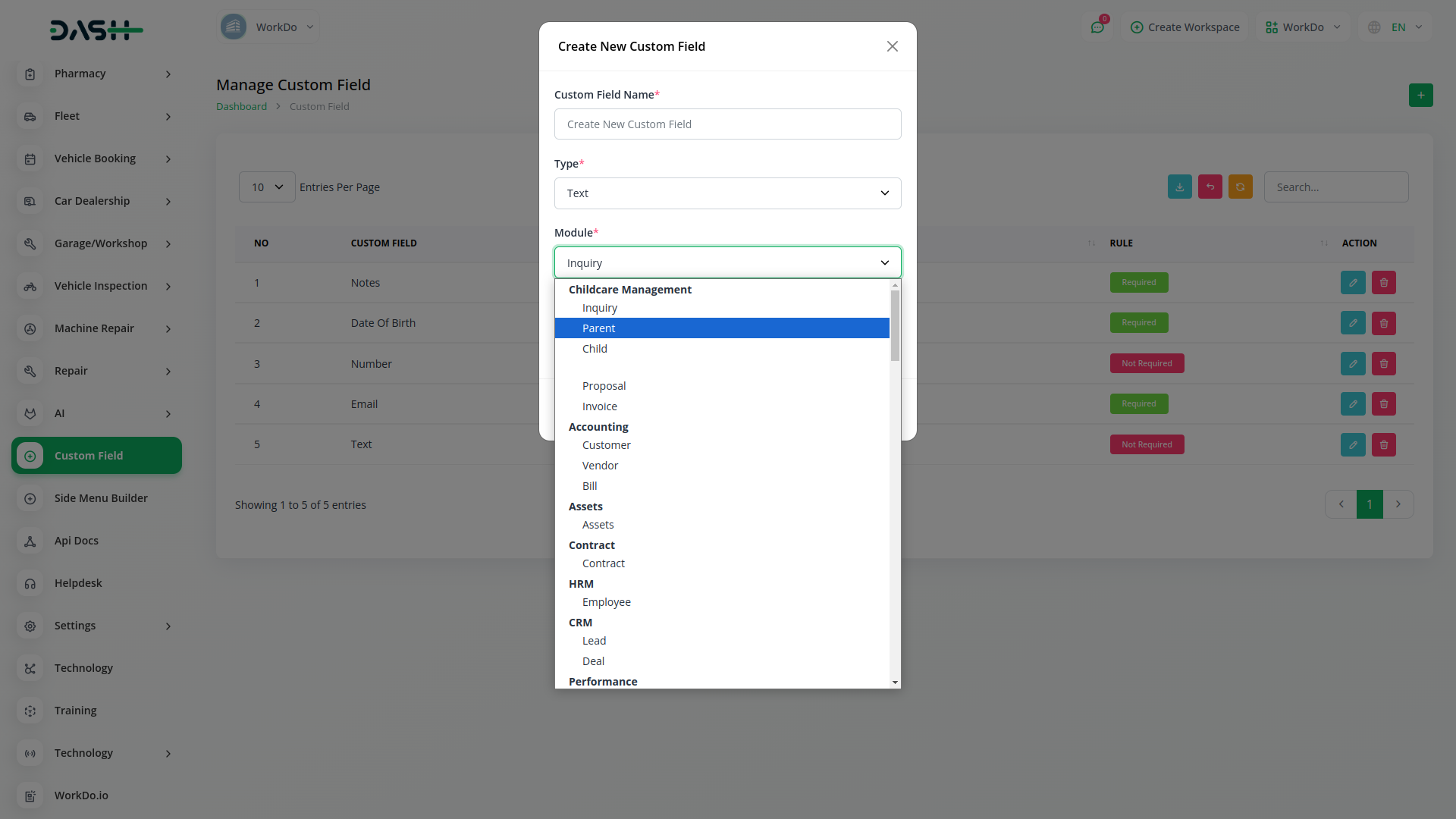 Uso de arquivo personalizado em HRM, conta, lead, ativos, contrato, desempenho, posição, retenção, vendas, tarefas, todos os módulos. Você pode usar o campo personalizado para coletar informações adicionais sobre todos os módulos conforme desejar.