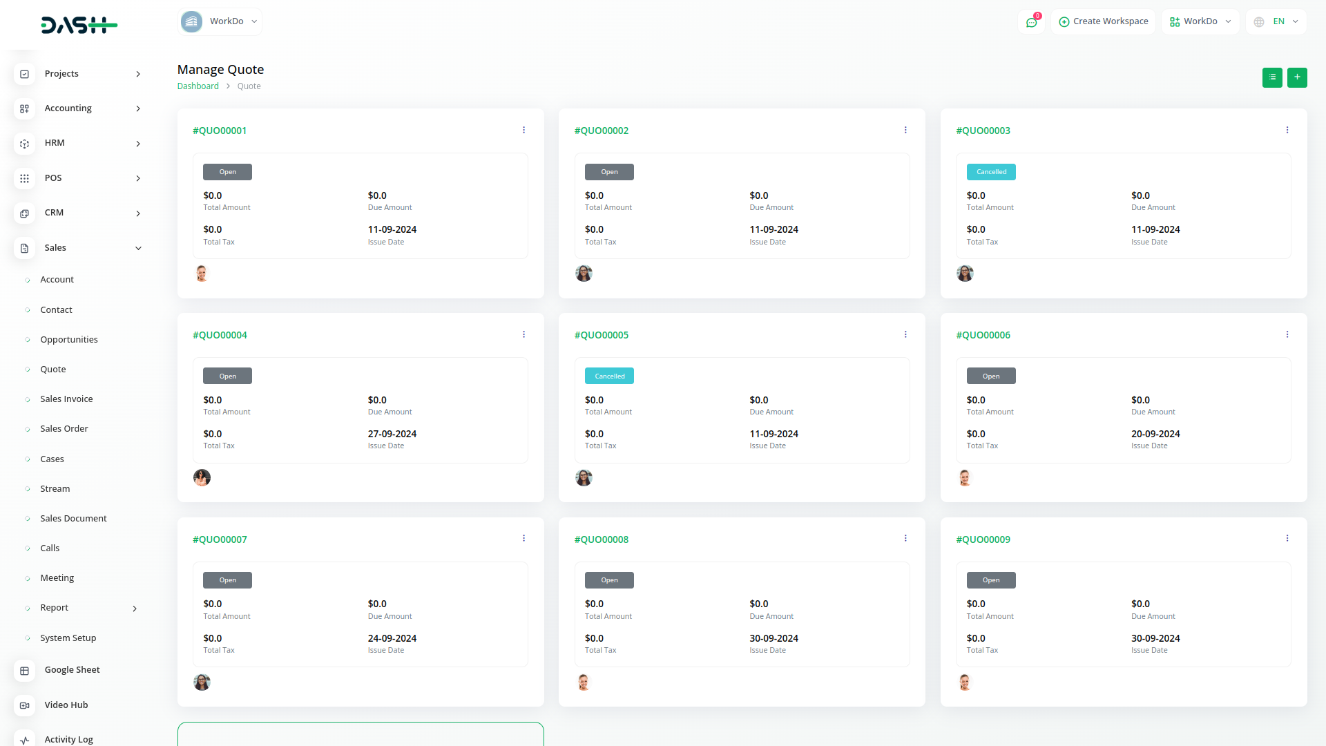 Manage Quotes, Sales Orders, Sales Invoices and call