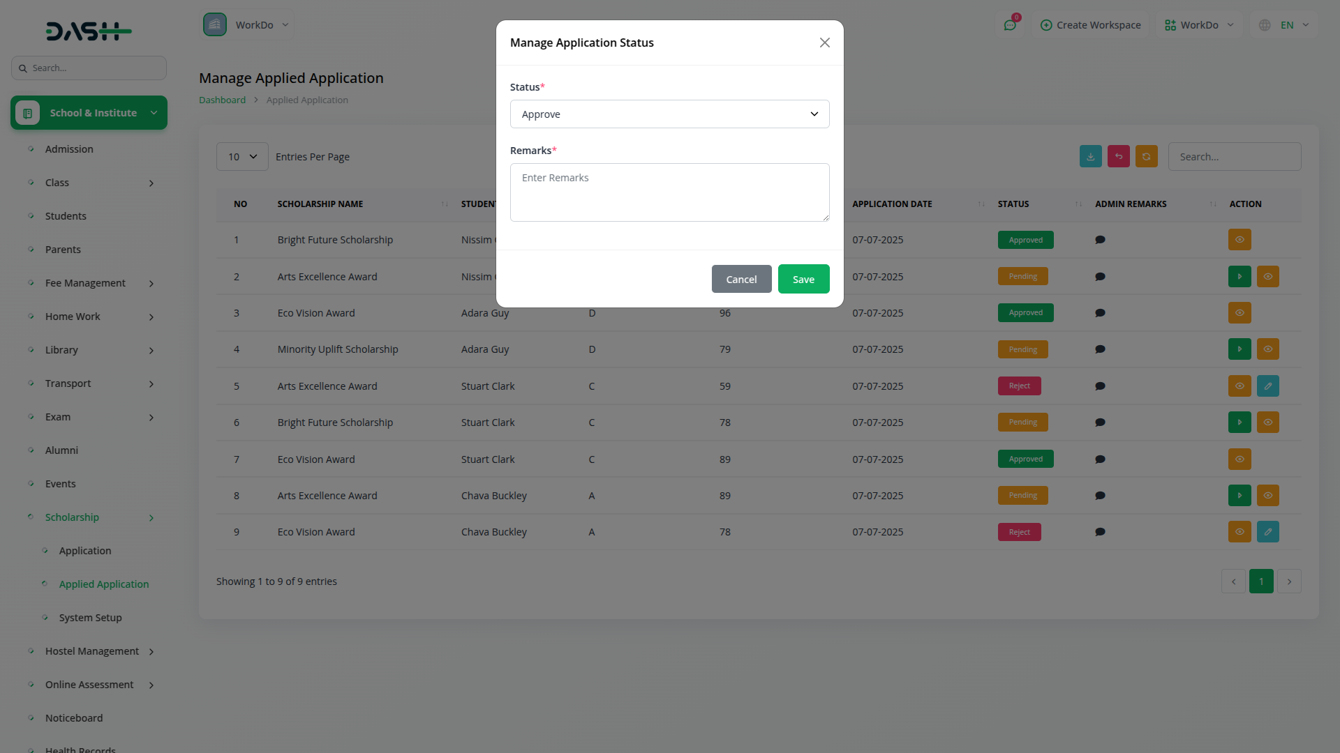 The Scholarship Management System is a comprehensive digital platform that streamlines scholarship programs from application to disbursement. Designed for educational institutions, government agencies, and organizations, it features automated workflows, document management, and secure financial integration. With separate portals for administrators, students, and parents, the system ensures transparent application processing, real-time status tracking, and efficient scholarship management while maintaining audit compliance and scalability across diverse organizational needs.