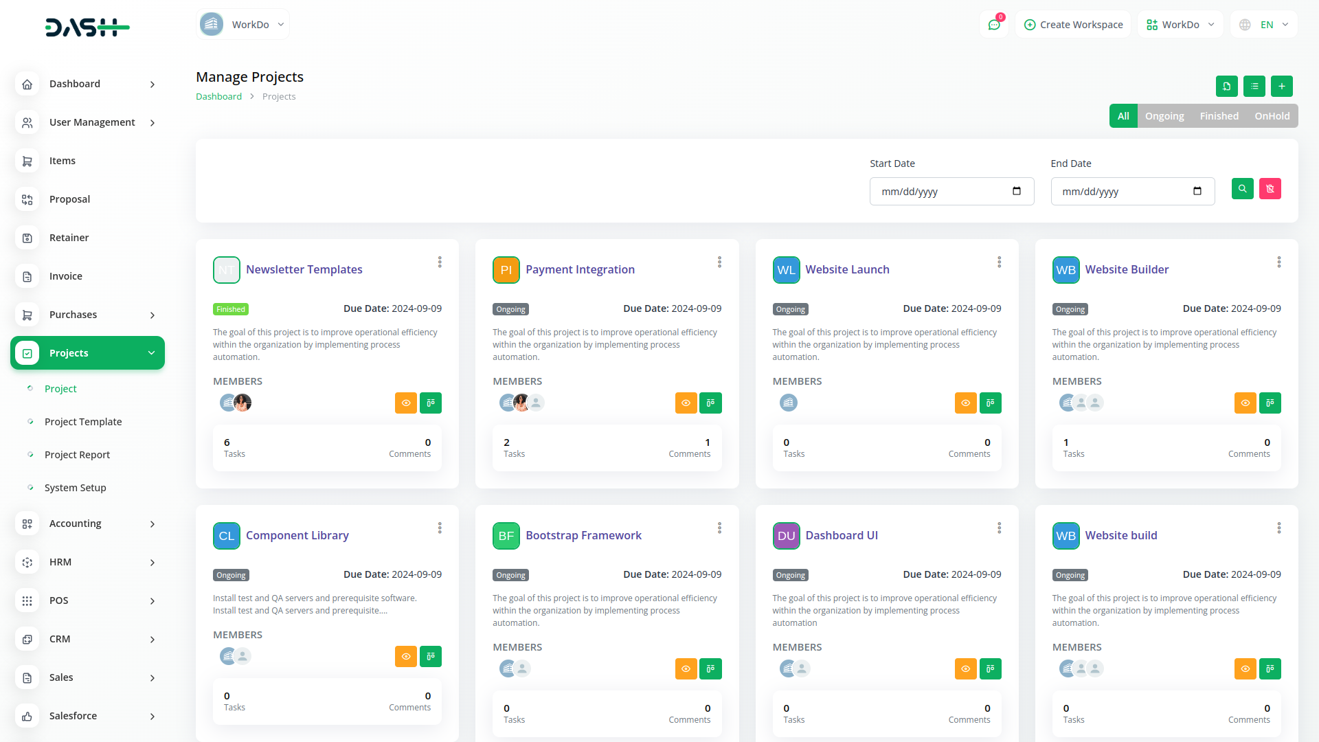 Com o Dash, você pode gerenciar todas as suas funções de negócios de forma conveniente em um único local.